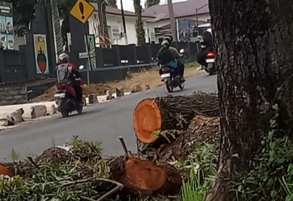“Masih segar ditebang juga. Sampe malam orang itu main terus. Kita pas lewat aja terganggu dibuat orang itu. Macet jalan,” kata warga, Selasa (09/12/2025) pagi.